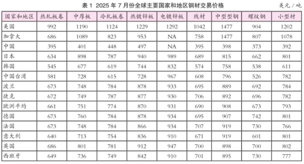 7月份美国螺纹钢和线材制造商全面提价,用户抵制有限,因市场预期232条款关税将削减进口,促使客户提前下单,导致供应紧张、交货期延长,不过新关税可能削弱对美出口商的价格竞争力。线材需求强劲、供应紧张,市场猜测或再提价,而Liberty钢铁一线材厂复产将增加供应。螺纹钢方面,新增产能将抵消潜在进口损失,生产商恐难维持近期涨幅,关税对价格推动也有限。加拿大同期螺纹钢和线材价格小幅下跌,因需求疲软、供应过剩,线材厂商正推销低碳线材以提高销量。